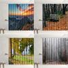 Autumn Forest Landscape Shower Curtain Maple Trees Road Plants Fallen Leaves Rural Scenery Wall Hanging Bathroom Decor Curtain