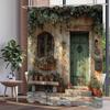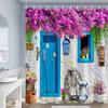 GAERustic Cottage Shower Curtain Weathered Turquoise Door Vintage Lantern Flowers European Style Polyester Washable with Hooks
