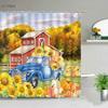 Fall Maple Leaves Shower Curtains Rustic Farm Truck Sunflower Pumpkin Squirrel Autumn Thanksgiving Bathroom Decor Set With Hoo