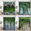 Rustic Rustic Wooden Panel Garden Wall Shower Curtain Green Plant Leaf Enclosure Fence Polyester Shower Curtains Bathroom Decor