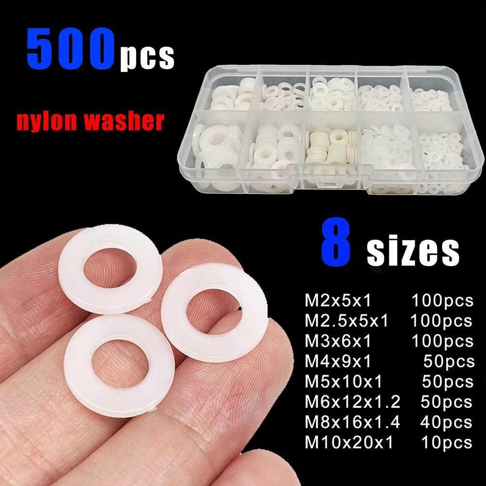 500Pcs Flat Nylon Washer 8 Sizes Insulation Gasket Ring New Plane Spacer