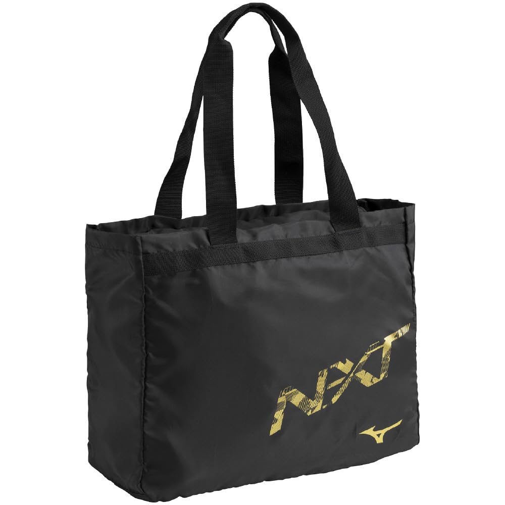 Mizuno N-XT Pocketable Tote Bag, Perfect for School, Travel, Excursions, Club Activities, and Sports, Black x Gold, L40 x W15 x H31
