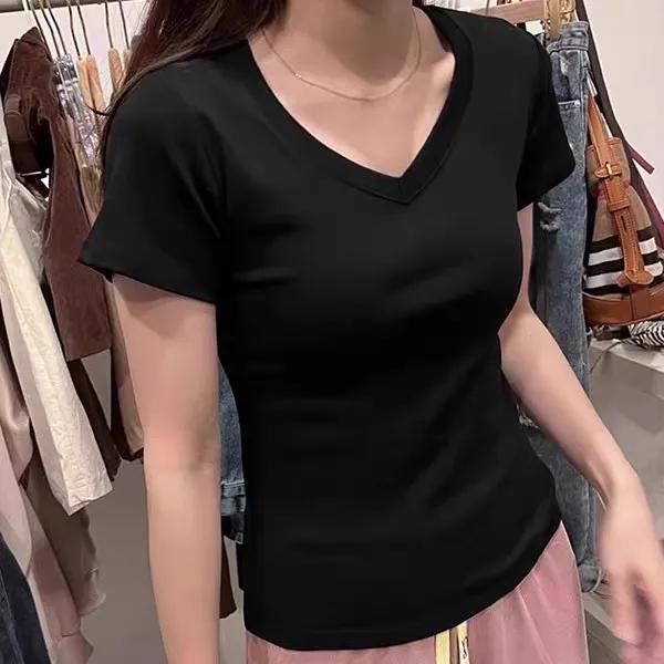 Pure Cotton American Short Sleeved T-shirt Design Hot Girl New Slim Top Summer Bottoming Versatile Top