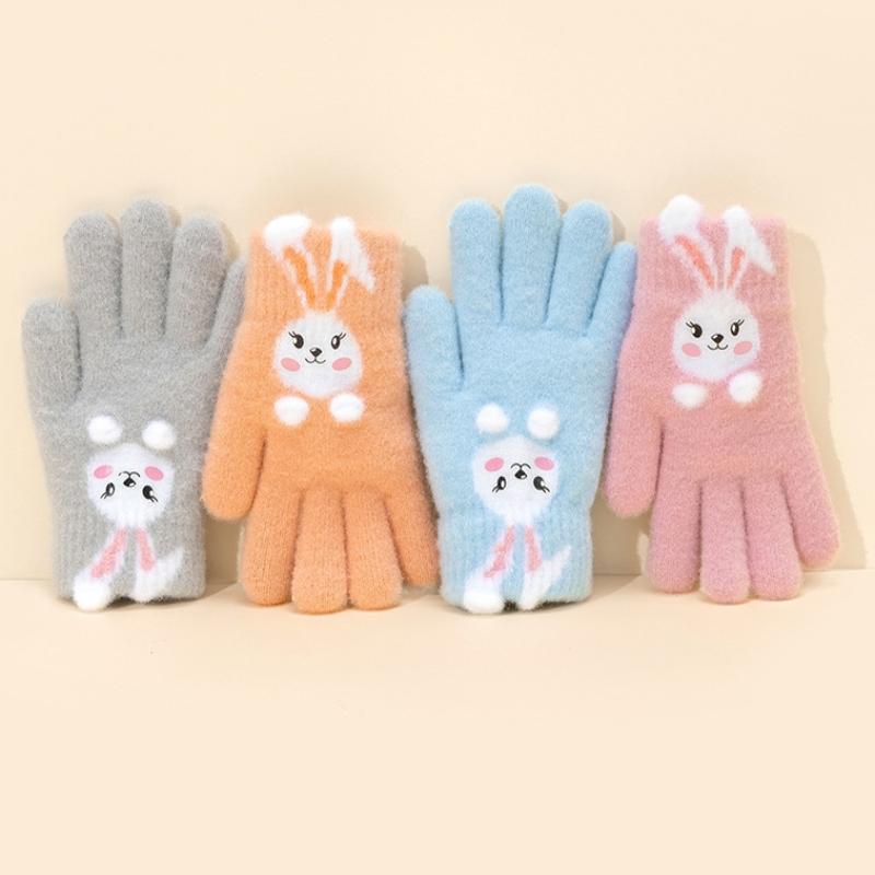 Kids Five Finger Rabbit Gloves Winter Warm Knitted Cute Cartoon Baby Girl Gloves For Cold Weather