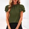 Women's Fashionable Ruffled Round Neck Solid Color Bubble Short Sleeved Top
