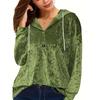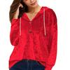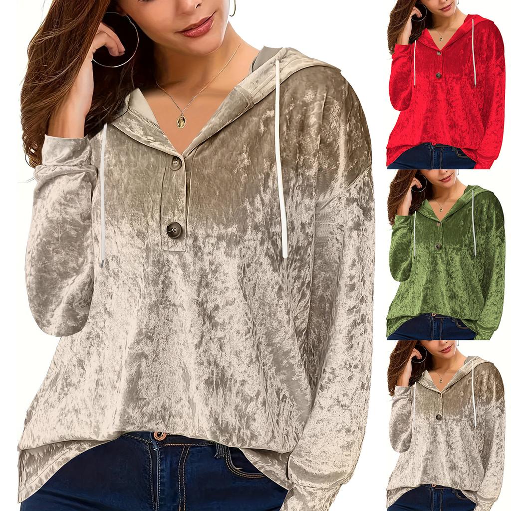 Ladies' Loose And Comfortable Gold Velvet V-neck Dawstring Hooded Button Up Oversized Top