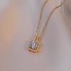 Women's Titanium Steel Necklace: Sweet & Cool Style with Square Zircon Pendant, Geometric Design, Light Luxury & New Style. CLE