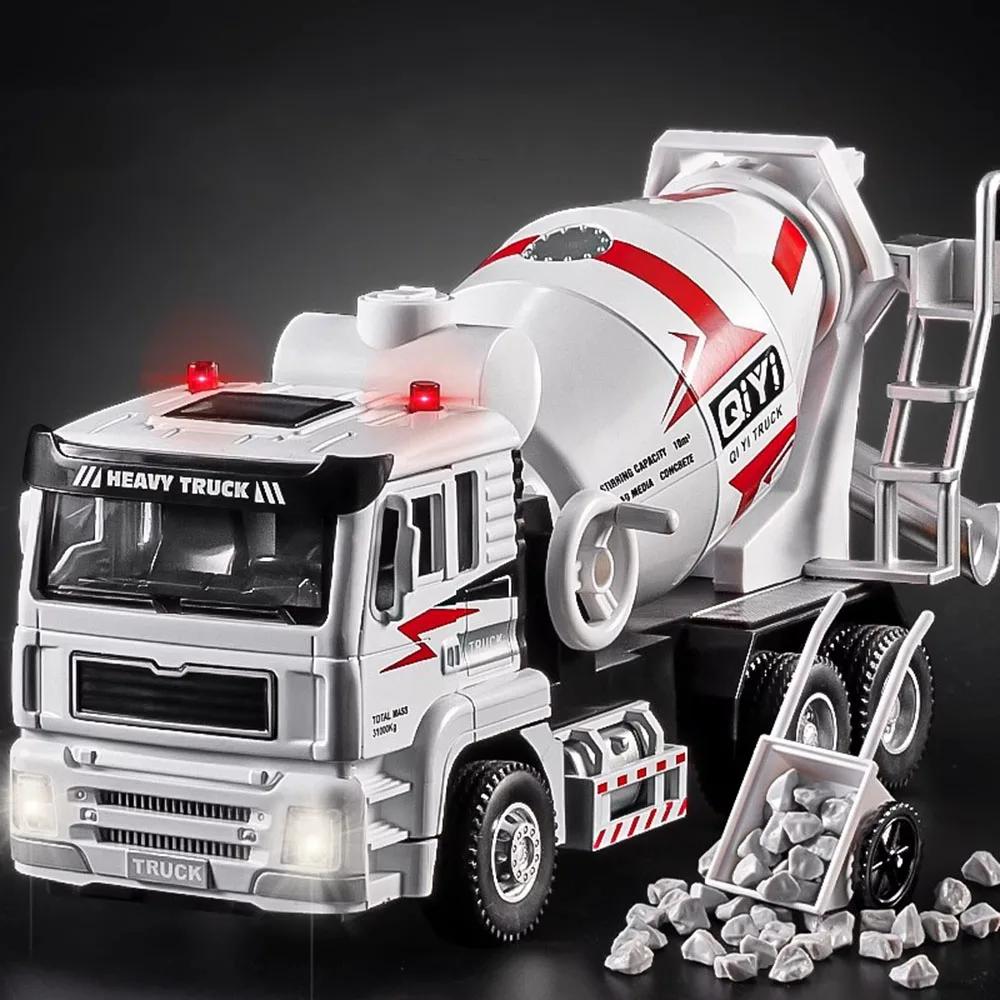 1:40 Scale Electric Cement Mixer Truck Model Toy Sound Light Pull Back Automatic Discharge Engineering Vehicle for Boys Gifts