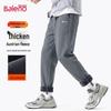 Stay warm and comfortable this winter with Baleno's Youth Warm Fleece Tapered Casual Pants. Designed for teenagers and young adults, these long pants feature a thickened warm fleece lining for superior warmth. The blended fabric with 96% polyester and 4% spandex offers a slight stretch for ease of movement, while the iron-free finish ensures a crisp, anti-wrinkle look. With a natural waist, loose fit, and stylish tapered legs with a drawstring closure, they are perfect for daily wear or lounging at home. The cool silk grid texture and letter pattern add a touch of casual, simple style.