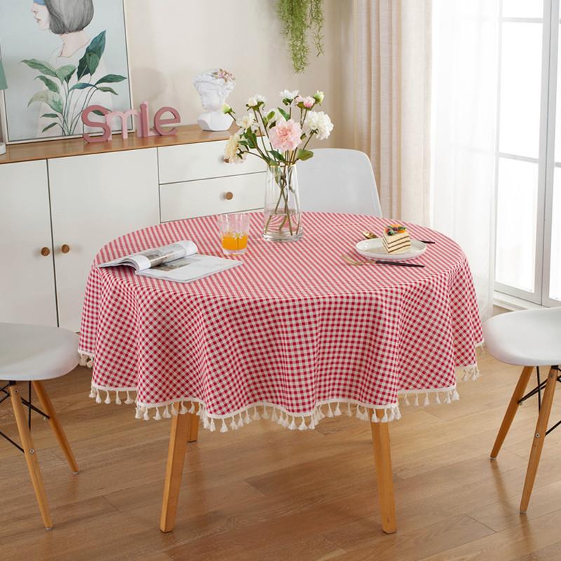 Tablecloth Around-Cotton Linen Tassel Tablecloth, Plaid Round Tablecloth, Red Striped Lattice Table Map, Wedding Cloth Cover