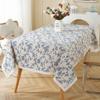 Blue Floral Pastoral Tablecloth, Vintage Cotton Linen Rectangular Table Cover For Dinner Picnic Coffee Party Table Home Decor