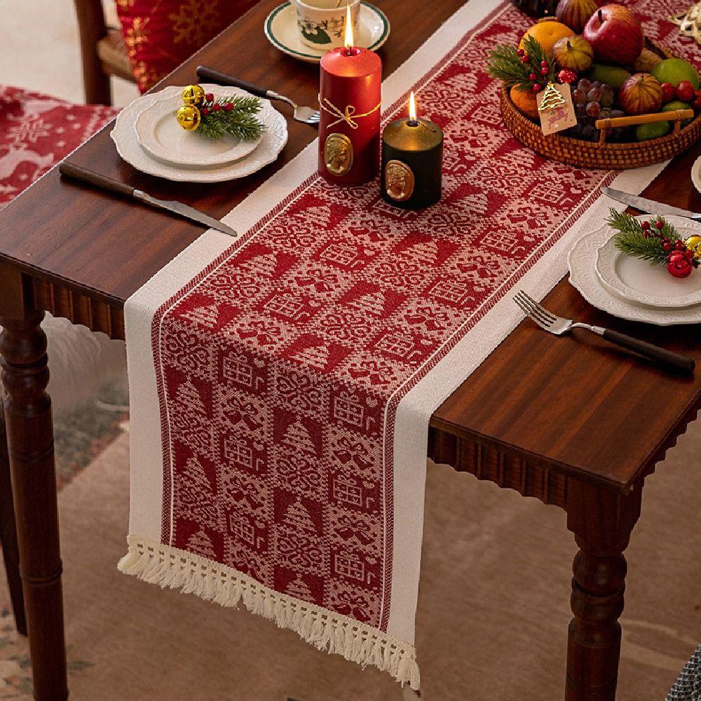 Red Christmas Table Runner Thickened Elks Tablecloth Creative Xmas Desktop Decoration Living Room