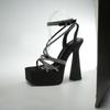 Fashion Super High Heels 13cm Thick Heels Waterproof Platform Square Head Rhinobason Line With High Heel Sandals Catwalk Banquet Shoes
