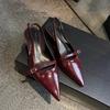 Fashion Baotou Sandals Summer New Pointed Head Shallow Mouth Metal Buckle A Line with Anti-slip Wear-resistant Heel Shoes