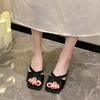 Fashion 2025 Summer Open Toe Women's Slippers Fashion Outdoor Dress Slippers Women New Square Toe Best Seller Solid High Heels Zapatos