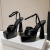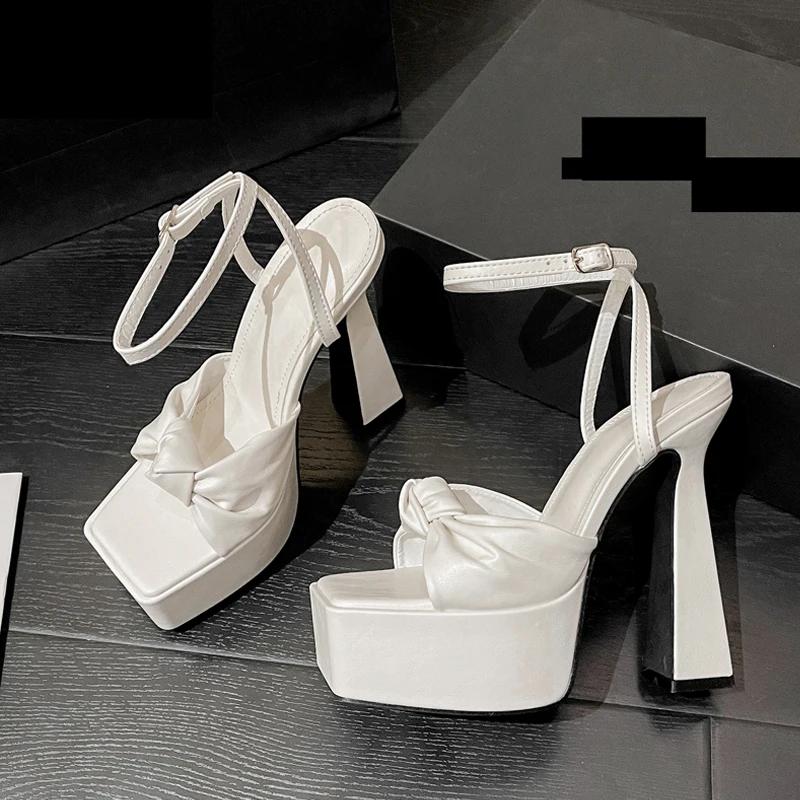 Fashion Eilyken Designer Pleated Square Toe Sandals Women's Banquet Party High Heels Shoes Fashion Platform Buckle Strap Pumps