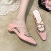 Fashion Crystal Women Slippers Slingback Dress Mules Shoes Designer Woman's Heeled Sandals 2025 Summer Fashion Slides Mujer De Zapatos