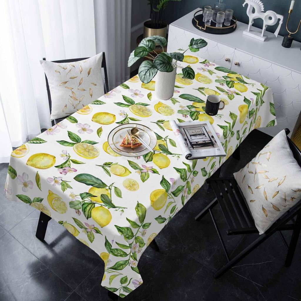 Summer Yellow Lemon Plant Rectangle Tablecloth Party Decor Washable Waterproof Kitchen Dining Table Cloth Wedding Decorations
