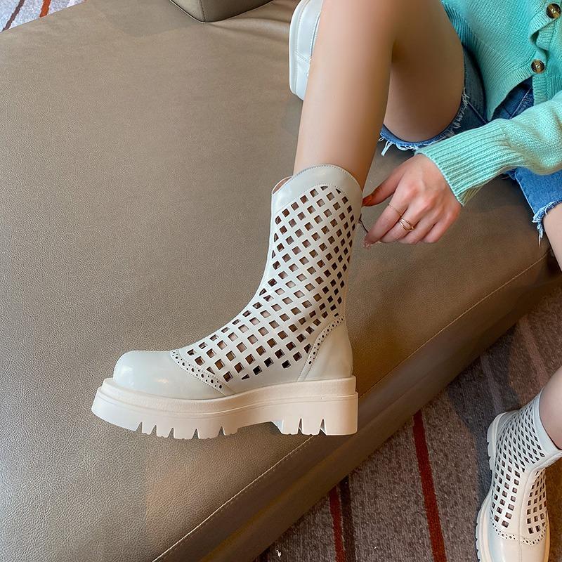 Fashion Women'S Hollow Ankle Boots Platform Spring Summer 2025 New Breathable Hole Hole Western Cool Boots Net Chelsea Boots