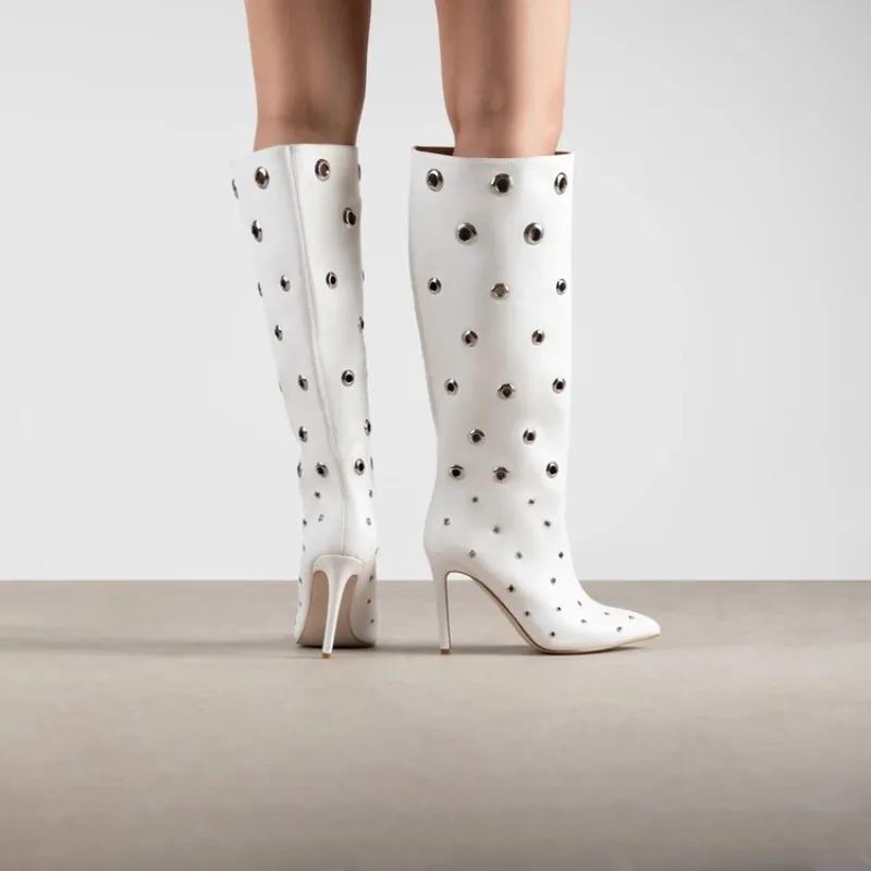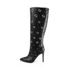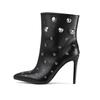 Modă Modă Rotund Decupat Toc Subțire 10cm Cizme Lungi Toamnă Iarnă Femei Tub de Oțel Dans Vârf Ascuțit Culoare Solidă Botină 36-4