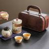Ru kiln travel tea set outdoor portable ceramic fast cup with teapot teapot tea can leather bag business gift