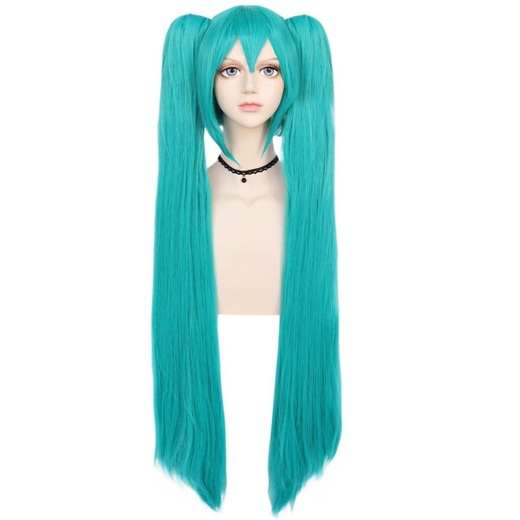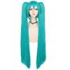 Perucă Sintetică Verde Cosplay Perucă Verde Teal Perucă cu Coadă Dublă Perucă Lungă Verde cu Breton Perucă Dreaptă Perucă Kawaii Perucă Miku