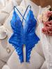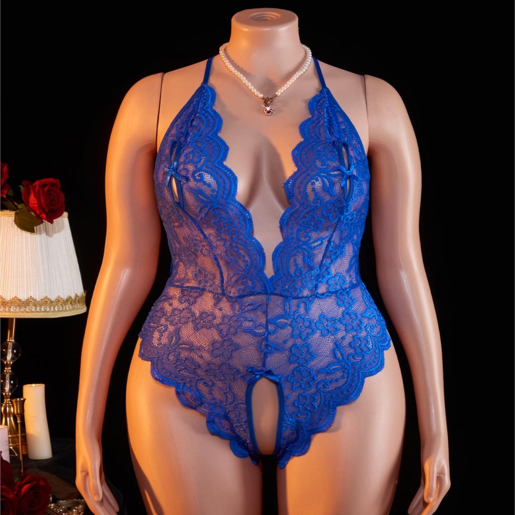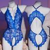 Plus Size Blue Deep V Open Bra Sexy Lingerie Backless Crotchless Bodysuit Porno Underwear For Erotic Lace Sheer Teddy Babydoll