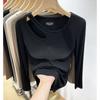 Threaded Long-sleeved T-shirt for Women in Spring and Autumn New Slim Stretchy Inner Bottoming Hollow Top