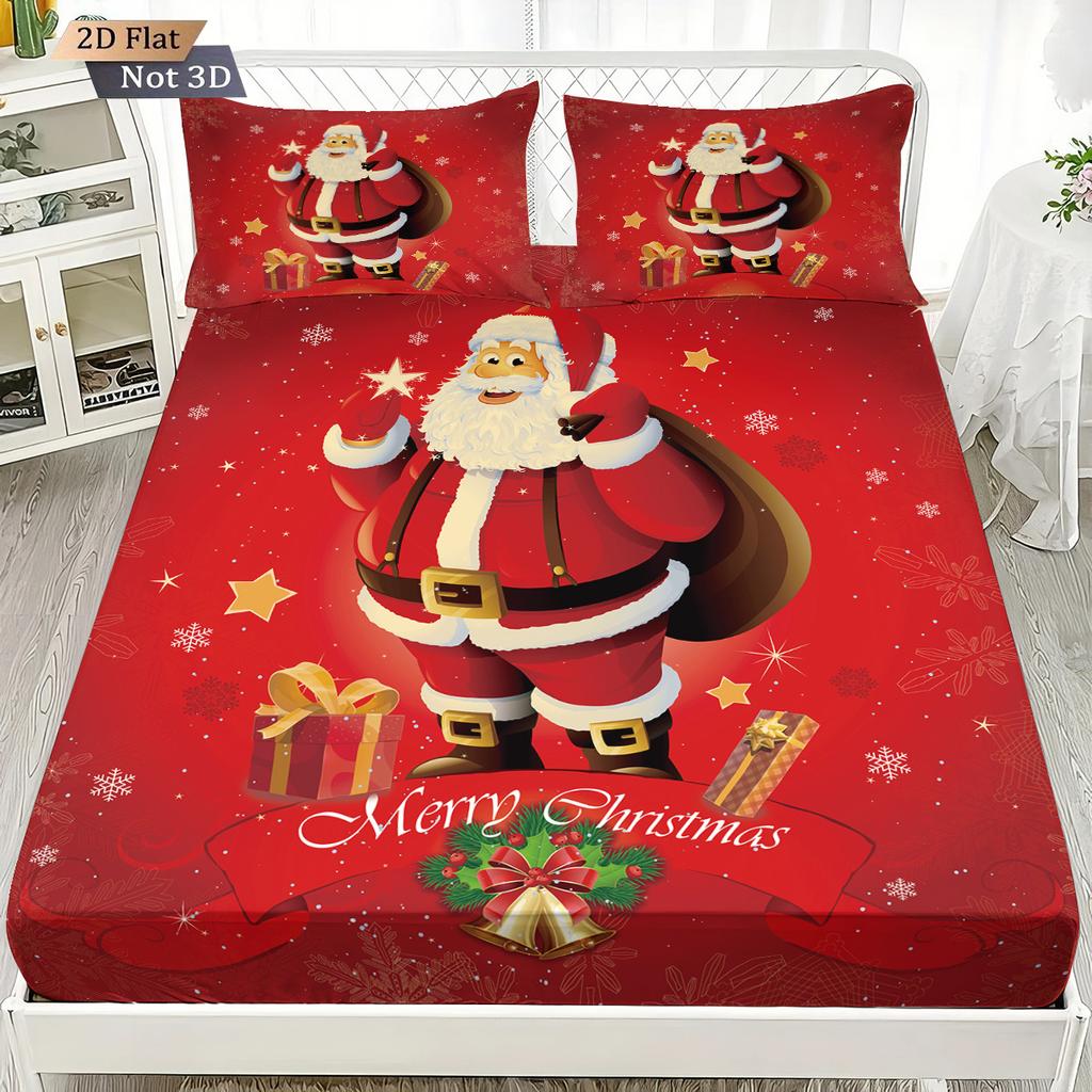 3Pcs Santa Claus Red Printed Coreless Bed Sheet Set, Multi Size Soft Bed Cover, Bedroom Bedding Decoration, Machine Washable