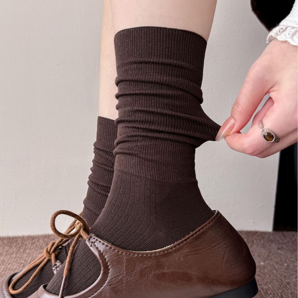 Women's Pure Cotton Autumn and Winter Extended Vertical Boneless Pile Socks Solid Color Versatile Mid-calf Socks Long Socks