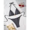 Strălucește cu încredere în acest set de bikini uimitor 2026, conceput pentru a îmbina farmecul de la piscină cu suportul hainelor sport. Setul prezintă un top clasic triunghiular împodobit cu cristale strălucitoare și un detaliu îndrăzneț cu inel metalic în centru, asortat cu un slip sportiv asortat.. Fie că înotați, faceți exerciții fizice sau vă bucurați de soare, acest set elegant vă asigură că ieșiți în evidență cu fiecare mișcare.