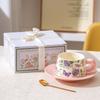 Original crape myrtle flower coffee cups and saucers, event gifts, opening souvenir, wedding gift, girlfriend's birthday gift box