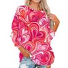 Women's Fashionable Round Neck Shoulder Long Sleeved Valentine's Day Printed Casual Pullover Top