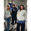 Jungle Tiger Floral Embroidery Heavyweight Pink Sweatshirt for Women, High Street Fashion Brand, Loose Casual Crew Neck Pullover Top for Men