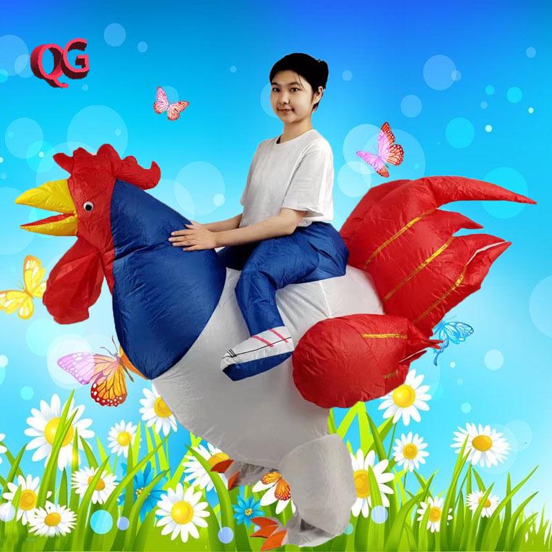 Inflatable Big White Chicken Costume with Colorful Wings for Adult Parties and Performances