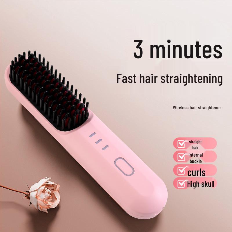 USB Rechargeable Wireless Straightening Brush with Negative Ions - No Damage, Wet/Dry Use, Portable Curling Iron