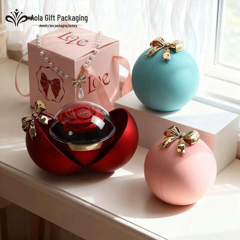 Romantic Bow Rose Jewelry Gift Box: Preserved Flower Necklace & Ring for Valentine's and Mother's Day