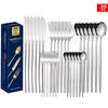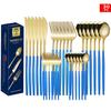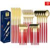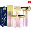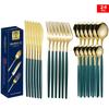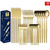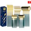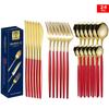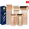 Set tacâmuri din oțel inoxidabil Portugal Gold, 24 de piese: Cuțit de Steak, Furculiță, Lingură de Hotel în Cutie Cadou