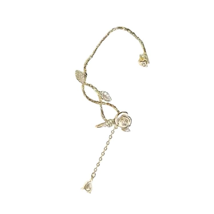 Camellia Tassels Ear Cuff with Zircon Comfortable Ear Clip Unique Flower Earring Handmade Evening Dress Accessory