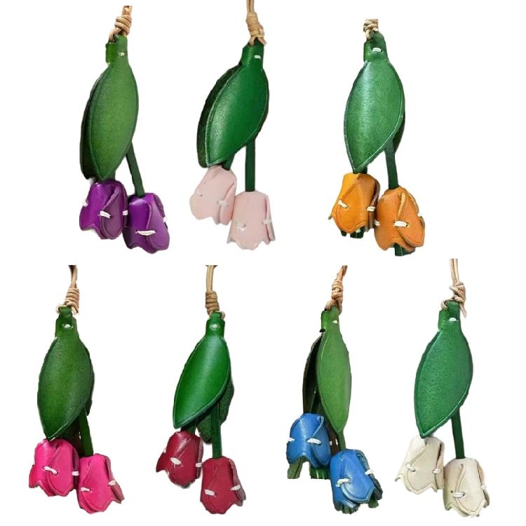 Sophisticated Leather Flower Keychain Sturdy Leather Floral Keyring Pendant Accessory For Unique Style Enthusiasts