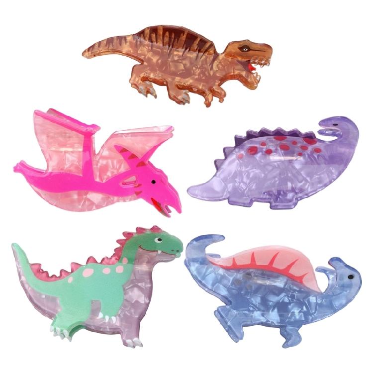 Craft with acrylic and alloy, acrylic dinosaur hair clip, maintaining its lustrous finish through extended wear.