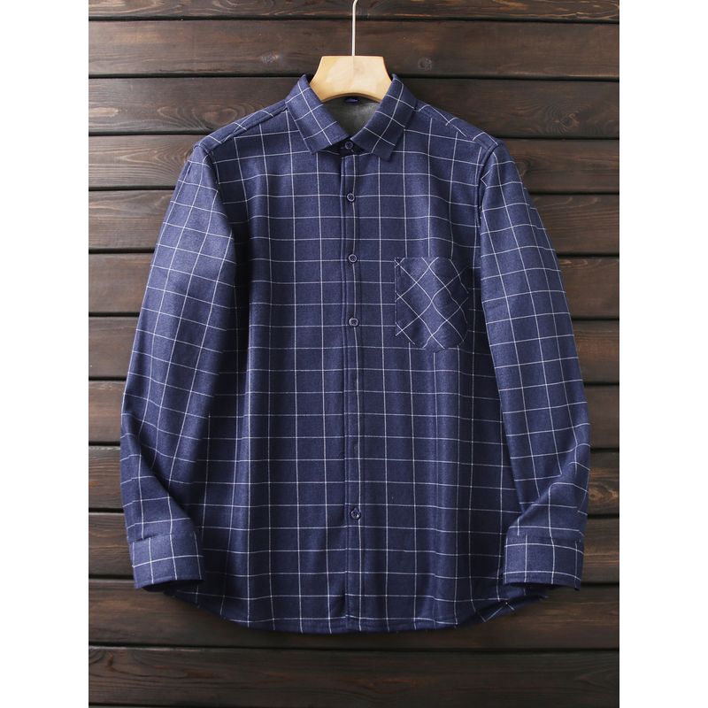 Plus Size! Composite One plus Velvet! Foreign Trade Tail Goods Men's Thickened Warm Plaid Long sleeve Shirts Top Winter