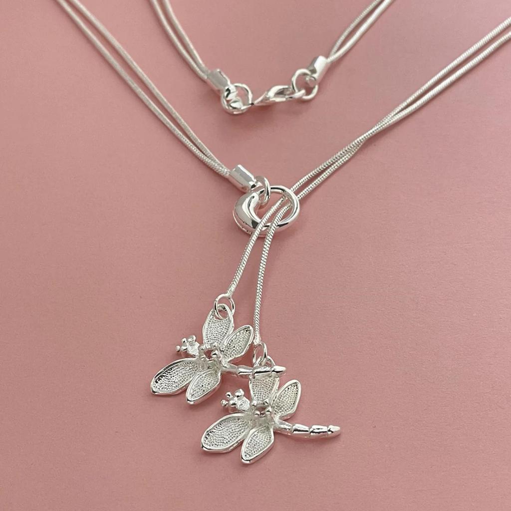 Copper Two Dragonfly Pendant Necklace For Women Snake Chain Necklace Wedding Engagement Jewelry