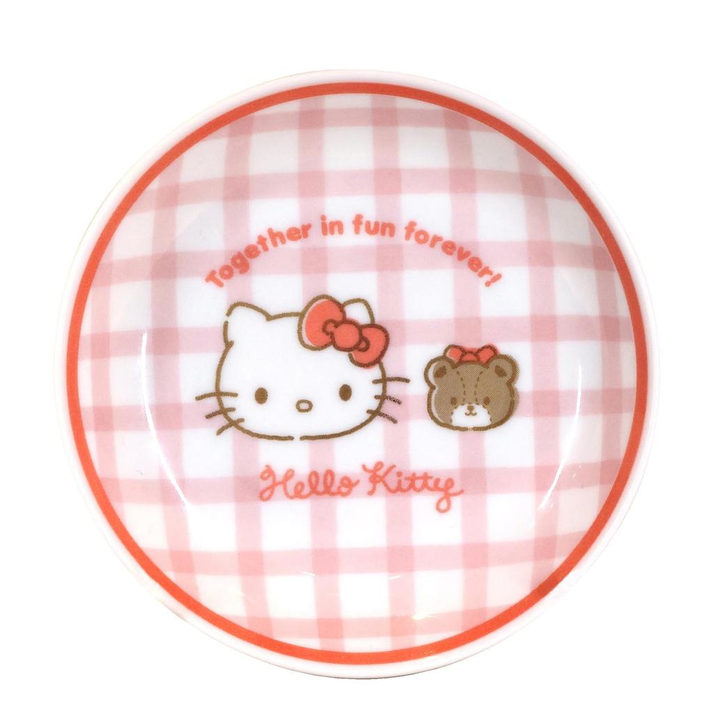 Sanrio Small Mini Deep Microwave and Dishwasher Blue and White Check Made in 300103 "Hello Kitty" Plate, Plate, Approx. 14cm, Safe, Dishware,