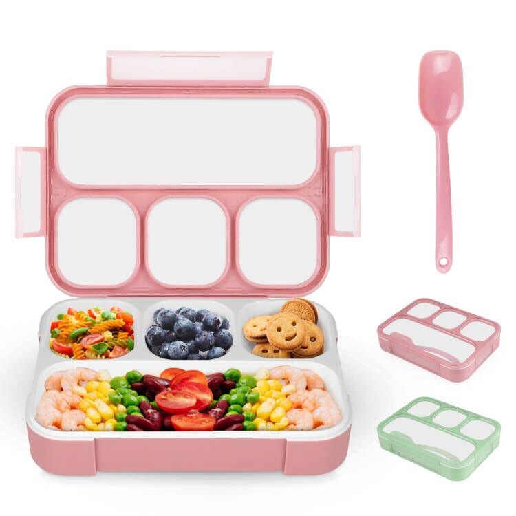 NatraProw Leakproof Lunch Cute Snack Box for Adults and Includes 4-Compartment Box, Kids, Utensils, BPA-Free, Microwave-Safe (Pink)