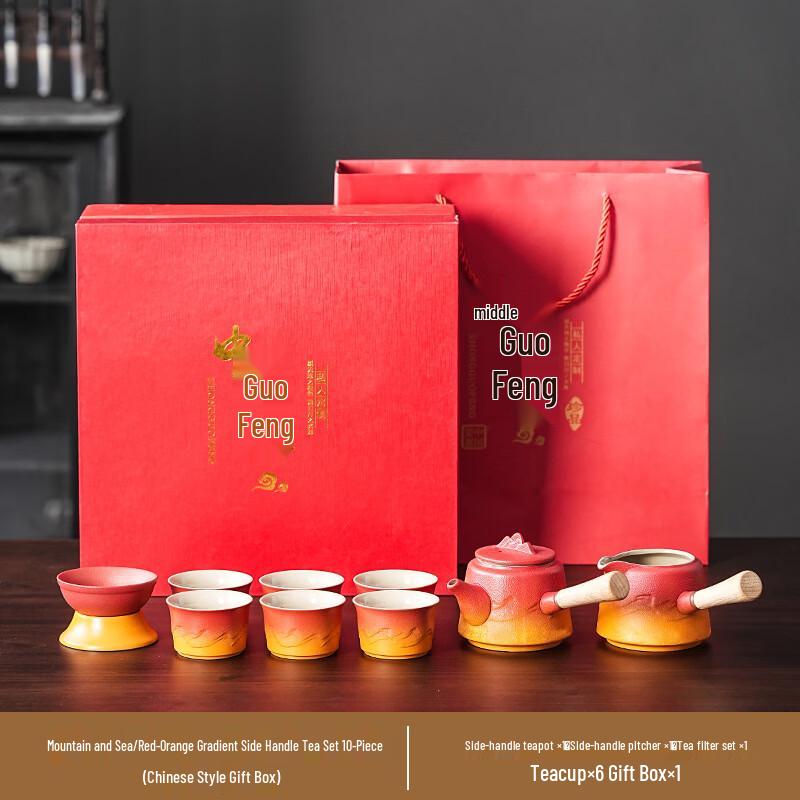 Chuangjingpin Red Orange Mountain Sea Kung Fu Tea Set