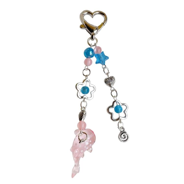 Whale Pendant Beaded Keychain Ocean Animal Keyring Mobile Phone Accessories Fashionable Cellphone Lanyard Decoration