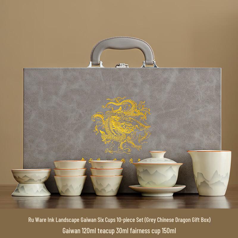 Chinese Vintage Style Black Pine & Plum Blossom Tea Set