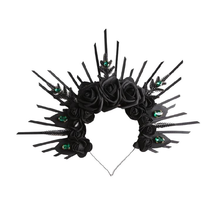 Fashionable Black Rose Headband Elegant Rose Flower Headband for Individualized Style at Parties and Music Festivals