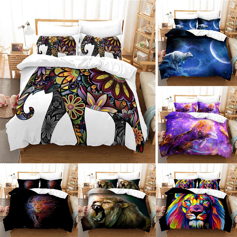 3D Digital Printing Bedding Quilt Set Three-Piece Elephant Animal Cartoon Animation